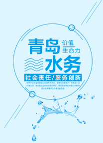 標(biāo)識以上下結(jié)構(gòu)為主,左右結(jié)構(gòu)為輔,上部以淺藍(lán)色外圓內(nèi)方構(gòu)圖,下部居中配深藍(lán)色黑體“青島水務(wù)”漢字及英文構(gòu)成。上部圖案中心為漢字“水”及灰色英文“water”水字的首字母“W”的變形,直觀地展現(xiàn)了行業(yè)屬性;豎形管道狀“川”字的造型,代表上水、中水、排水三大主要業(yè)務(wù)。中心延伸出的圓形構(gòu)成英文青島的首字母“Q”的變形,體現(xiàn)了水務(wù)集團(tuán)總部的歸屬地,體現(xiàn)了水處理源于自然回歸自然循環(huán)往復(fù)的行業(yè)特性。外圓內(nèi)方構(gòu)圖賦予了健康、穩(wěn)定、安全、環(huán)保、包容、和諧、博大、陽光的內(nèi)涵。下部“青島水務(wù)”漢字及英文莊重、穩(wěn)健,上下部連接,如同一輪朝陽在天際間冉冉升起。